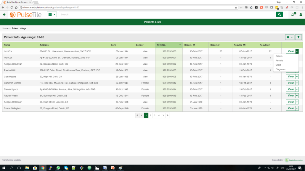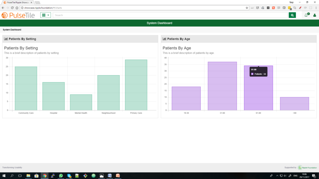 With the challenge of great usability in mind, we’ve tackled this head-on, set in the context of a broad push towards an open platform. Building on learning from several phases of earlier work (including the Leeds Care Record, ClinUiP, and NHS VistA), we have developed and deployed our PulseTile UX/UI framework as part of the Ripple Foundation‘s open source and open platform showcase stack.